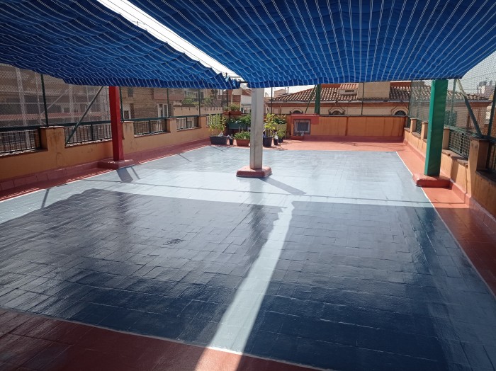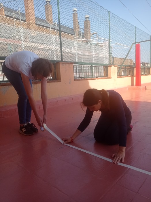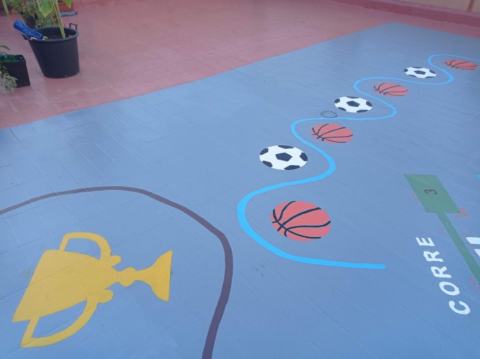 Pintura de juegos educativos en el suelo del patio superior ...Objetivo conseguido!
