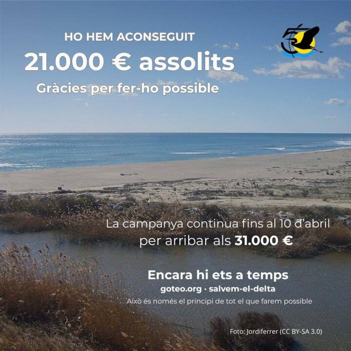 Avui al migdia, ho hem aconseguit! La campanya “Salvem el Delta del Llobregat” ha assolit els 21.000 euros, el mínim necessari per garantir que el projecte es farà realitat.